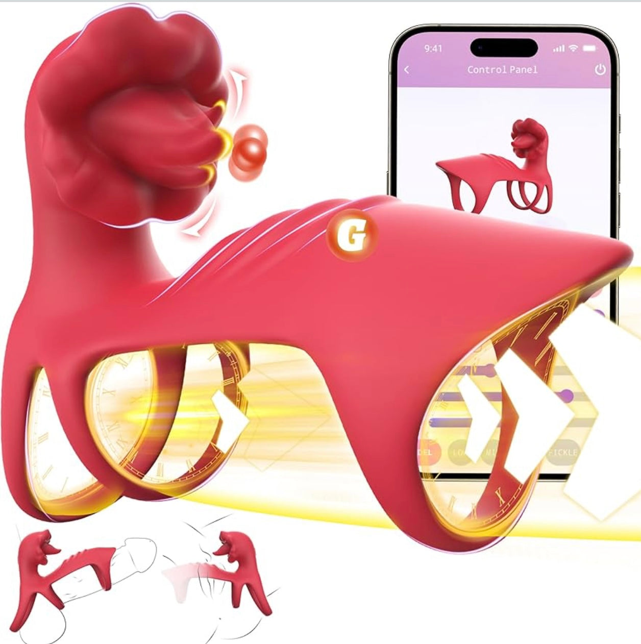Anel Peniano Vibratório, Brinquedo Sexual para Casais e Homens - Vibrador com Controle Remoto por Aplicativo, Peniana com Vibrador Clitoriano em Formato de Língua, Anel Peniano, Manga para Pênis.